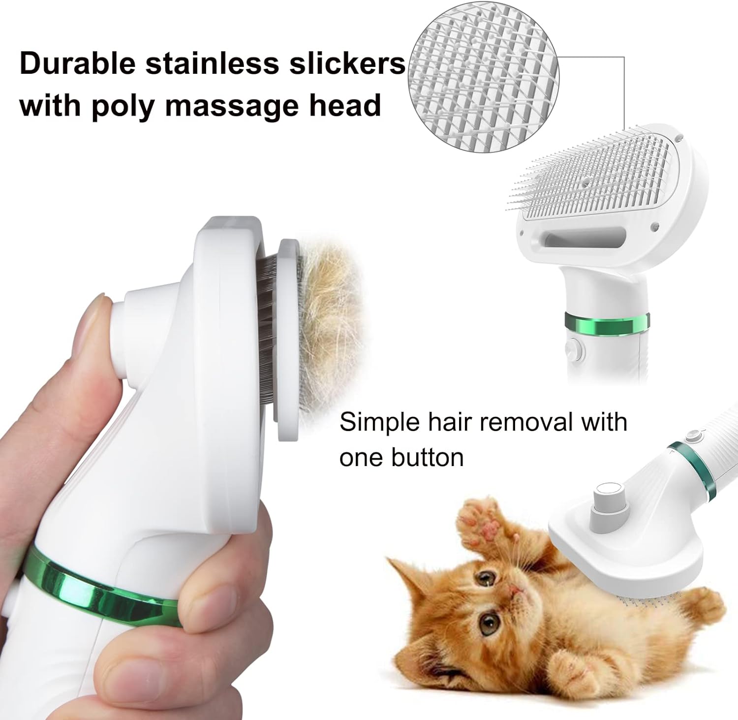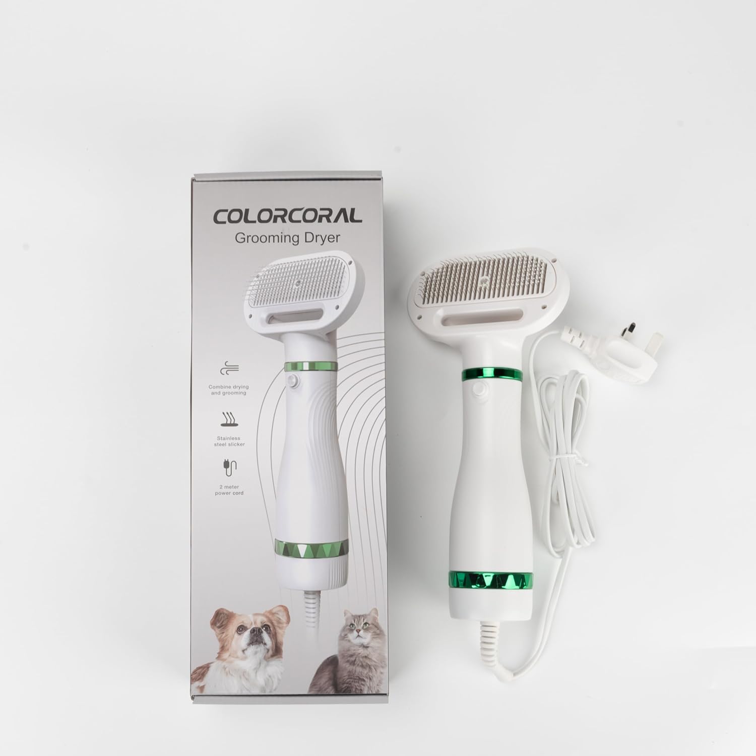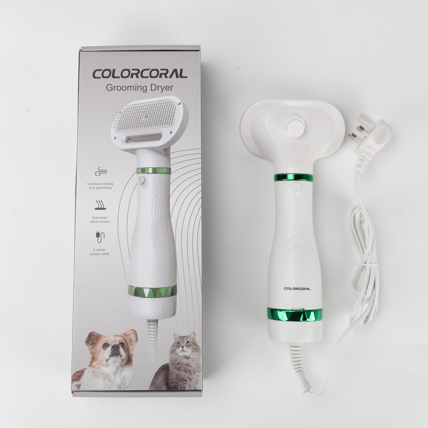 ? 2in1 innovating design, combine the pet hair dryer with pet hair brush, allow you could groom your little beloved pets while drying their hair. Every pet keeper should face the problem: your pets always run away when you try to dry the hair after bathing.